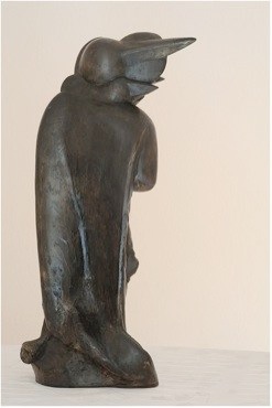 in the foreground the entire figure of the sculpture „Beggar Woman“.