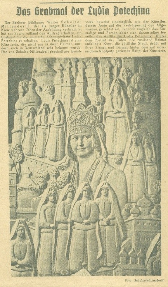 The sculptures ,The Reflective Sisters’ and the tomb for actress Lydia Potechina of 1934 (see below) were published in January 1946 in an unnamed magazine.