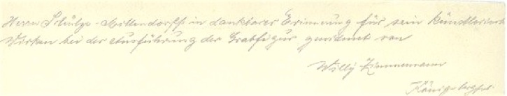 „Herrn Schulze-Mittendorff in grateful memory for his artistic legacy during the accomplishment of the tomb sculpture“,