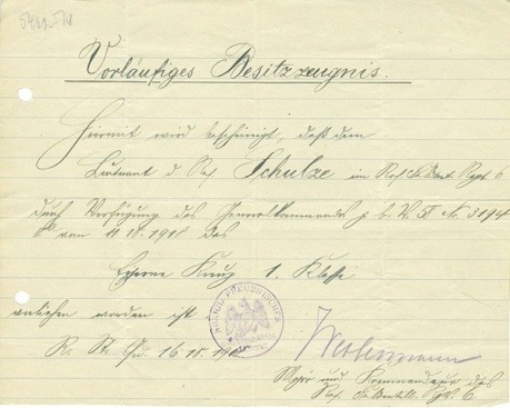 Im Januar 1919 wird Walter Schulze-Mittendorff aus der Armee entlassen, ausgezeichnet mit den Verdienstorden für Tapferkeit, dem Eisernen Kreuz I. und II. Klasse.