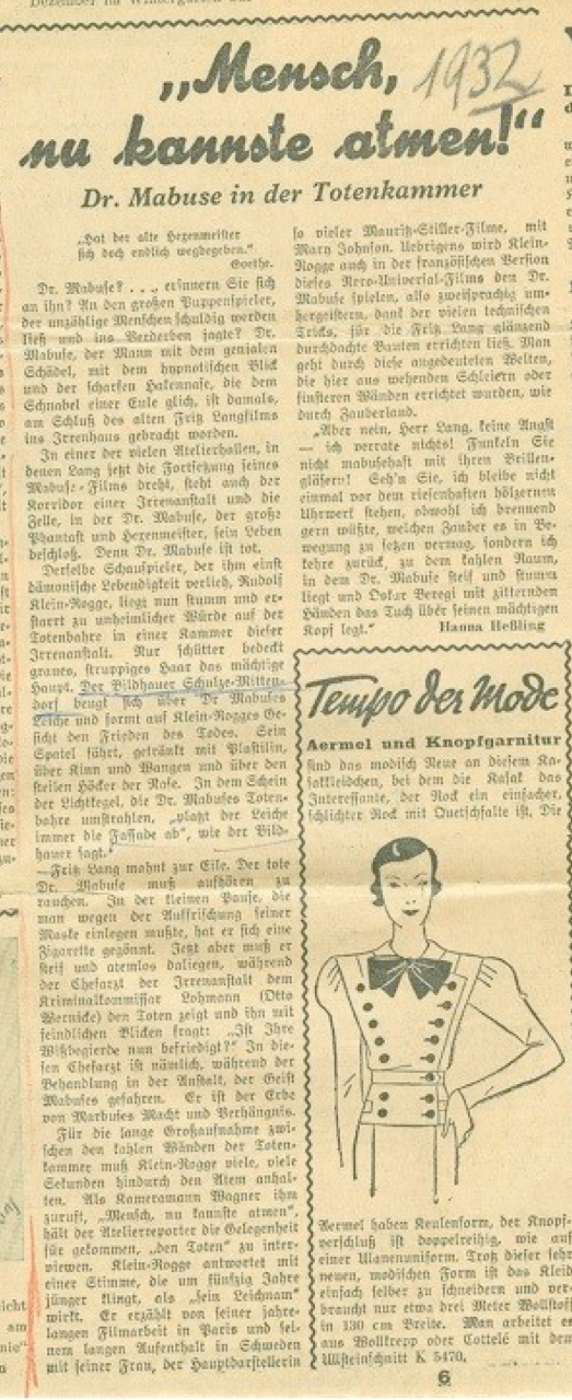 Der letzte gemeinsame Film ‚Das Testament des Dr. Mabuse’ ist gleichzeitig der letzte Film von Fritz Lang, bevor er 1933 Deutschland verlässt.