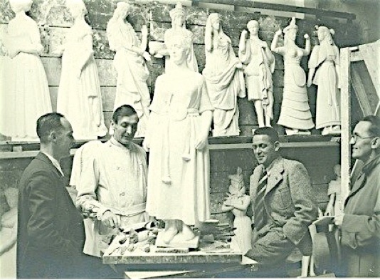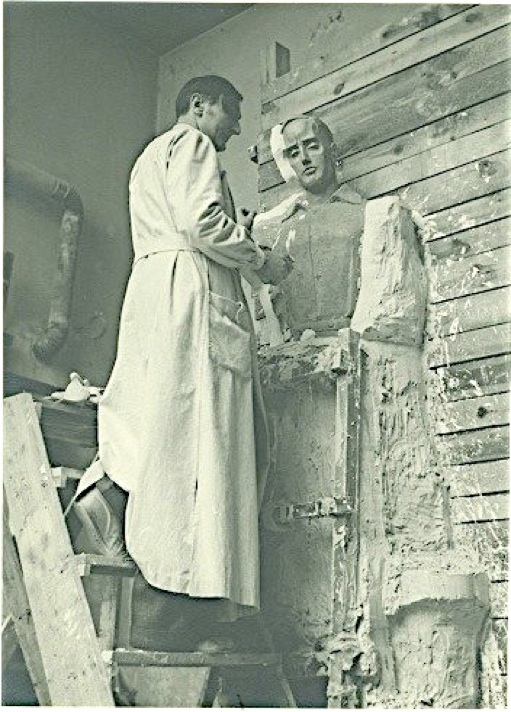Walter Schulze-Mittendorff bei der Arbeit an einer der beiden Figuren,